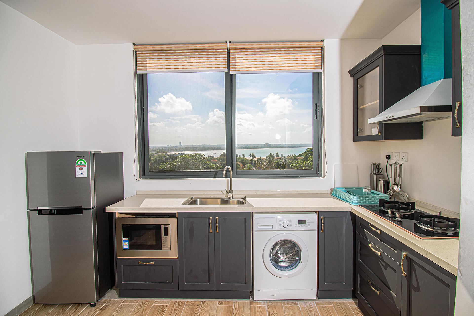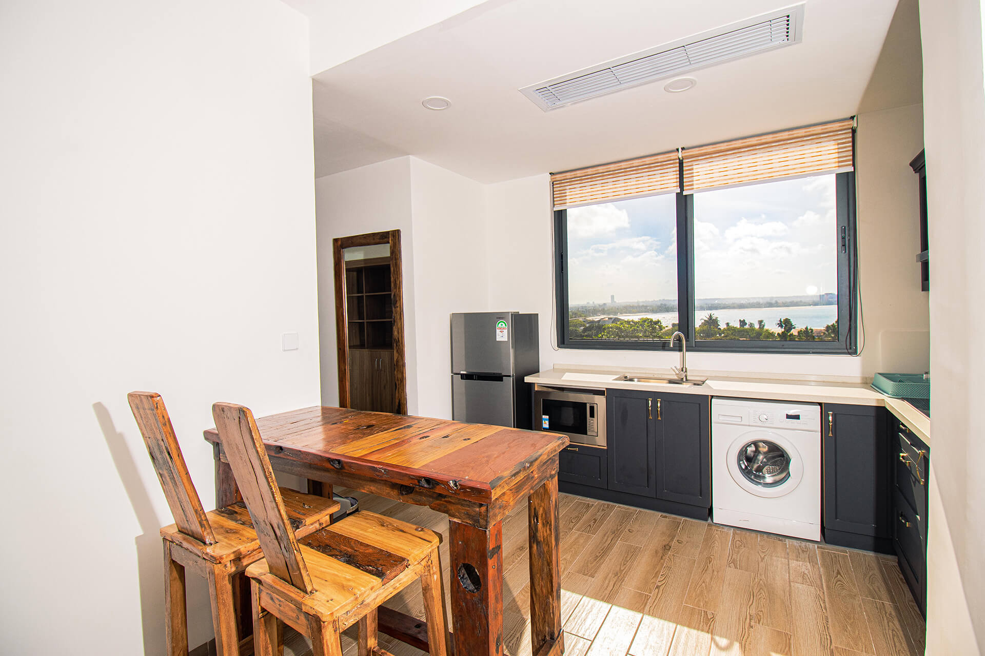 - Amenities: 70' Smart TV, Air-conditioned, Breakfast, Clothing storage, Concierge Service, Electronic Keycard lock, Fully equipped Kitchen with fridge, Hair Dryer, In Room Telephone, In unit Laundry/Washer, Iron and Iron board, Refrigerator, Safety Box, Shower gel & Shampoo, Slippers, Towels, Unlimited Fast Internet, Workstation