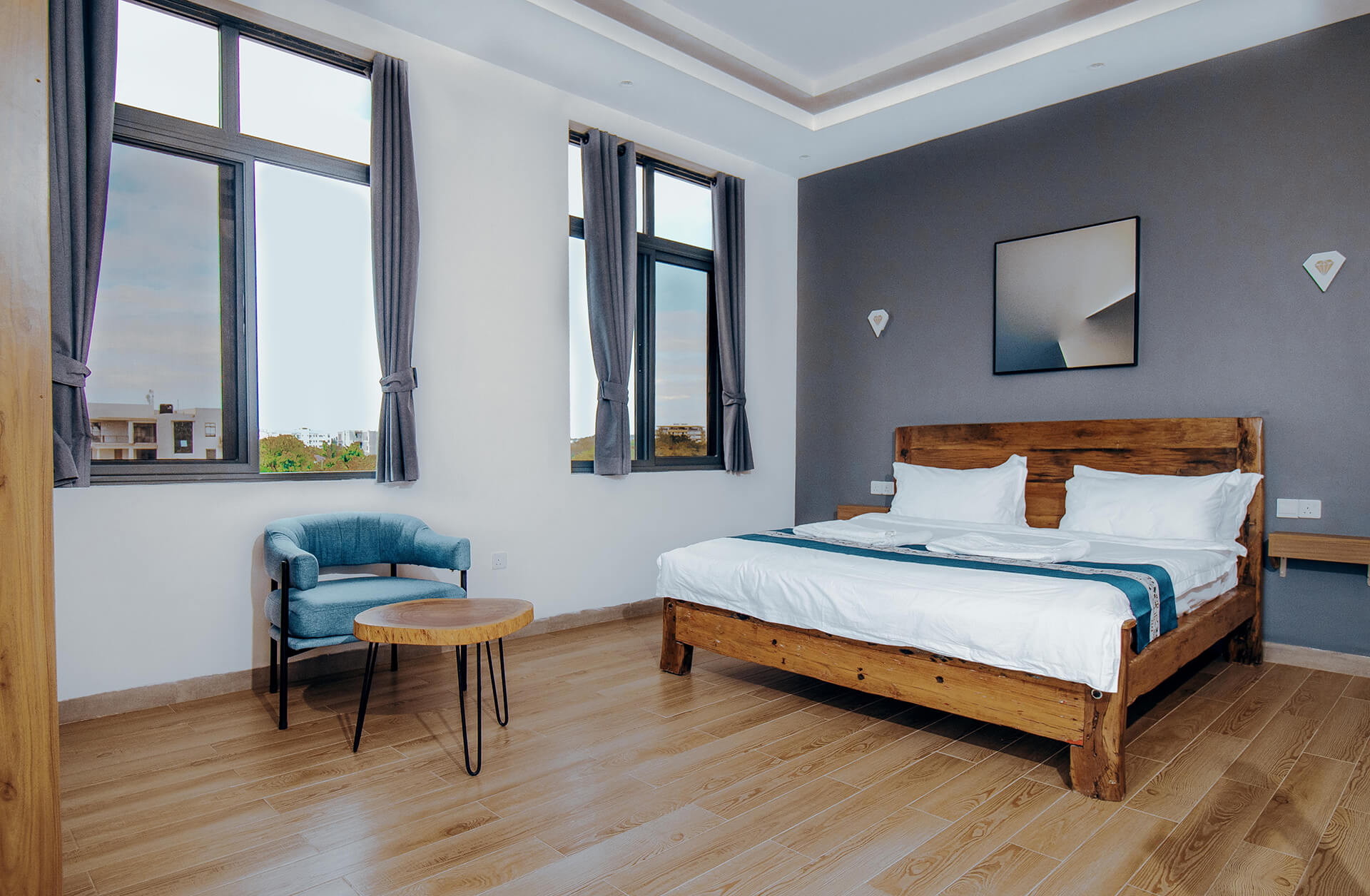 The Executive Suite is one of the most spacious and thoughtfully appointed accommodations at TSA Masaki, offering sweeping views of the city skyline and a complete range of premium amenities for a truly elevated stay. Designed with a modern aesthetic, each suite features a luxurious king-sized bed, flat-screen Smart TV, dedicated work desk, high-speed Wi-Fi, in-unit laundry, and an in-room safe — all crafted to meet the needs of today’s discerning traveler.